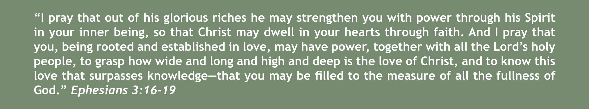 So what is this better part that Mary has chosen? I believe it is deep roots. In the rush of activity around her, Mary opted to be still. She chose to be seated - to rest in His presence, to listen for His voice, to find peace amidst the hustle and bustle. In doing so, Mary would have been nourished, strengthened, grounded. What was she grounded in? The love of Jesus, felt in His every word. We may not have the blessing of Jesus physically standing before us, we may not audibly hear His voice, yet as Paul prays in Ephesians 3:16-19, by the power of His Spirit dwelling in our hearts through faith, we may be rooted and established in love.