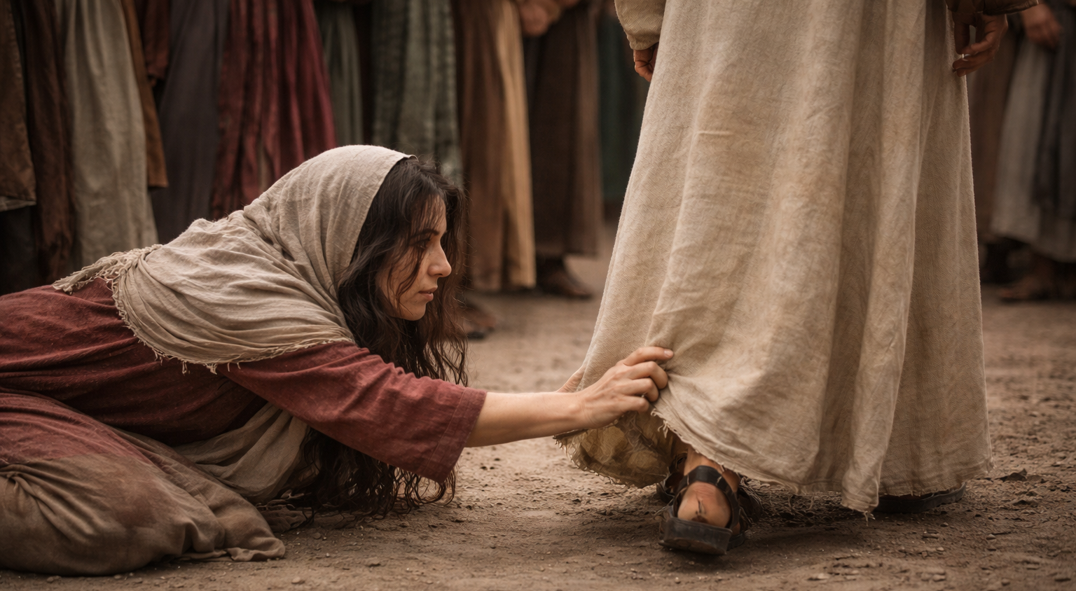Imagine this woman, bleeding for twelve years. Twelve years. It’s exhausting enough for a female to manage their menstrual cycle for a few days each month, but to bleed for so many years - it’s hard to imagine! The pain, the fatigue, the disgrace - the shame - not to mention the isolation - this woman would likely have been excluded for over a decade.